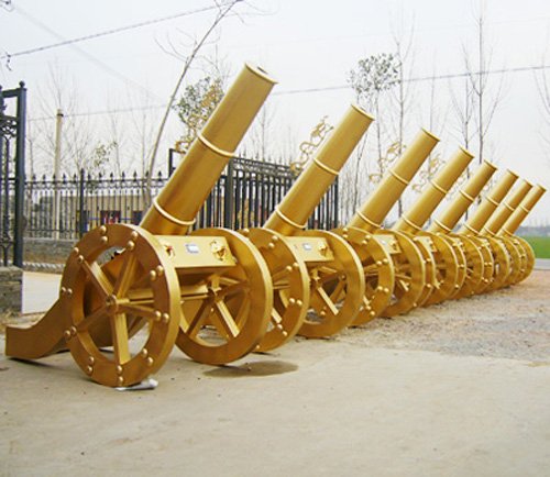 一、外觀威武壯觀,黃金色,采用優(yōu)質冷板制作,禮炮整體沒 有焊接痕跡,是禮炮中的佼佼者;